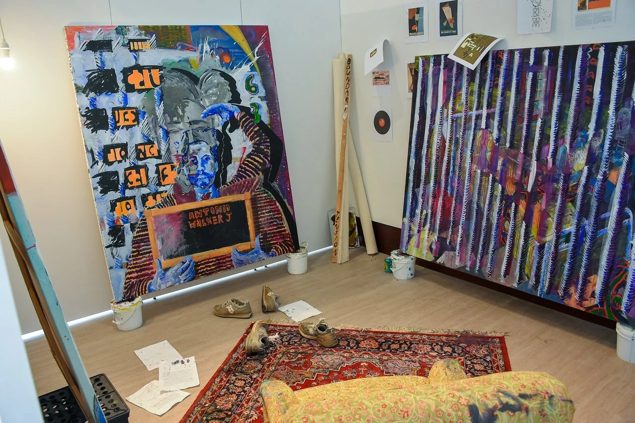 “Trapped” explores the creative brick wall that artists may run into after large shows or following the completion of a series of work. The feeling of being accused, trapped, and scared drove this installation. Alcohol could possibly get the creative imagination back on track, but that just lead to another wall without a window - the idea of self doubt then gets added to the list while the studies on the wall fold over on themselves in disappointment. The confidence was there, but then destroyed on impact with another deadline. An ego that needed humbling.